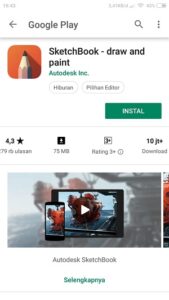 Sketchbook merupakan aplikasi pembuat gambar vector android yang memiliki banyak fitur. Aplikasi memiliki banyak pilihan pen,brush dan canvas layer dengan 16 blending mode untuk kebutuhan membuat vektor